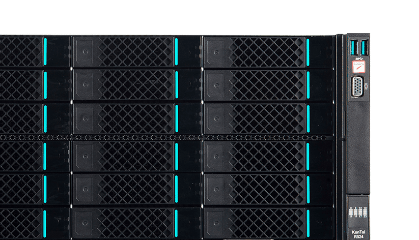 KunTai R524 存储型服务器是滕博会数码基于鲲鹏处理器推出的新一代 ARM数据中心服务器。。主要面向存储业务,,,具有海量存储、、高性能、、、、低功耗以及易扩展的特点,,,,适合为大数据分析、、软件定义存 储等应用场景的工作负载进行髙效加速。。